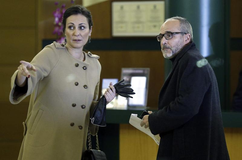 La actriz Maribel Verdú junto con su marido Pedro Larrañaga al llegar al tanatorio de Tres Cantos para despedir al actor catalán. EFE