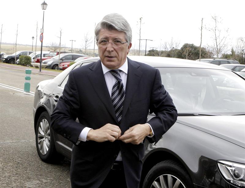 El presidente del Atlético de Madrid Enrique Cerezo llegando al tanatorio. EFE