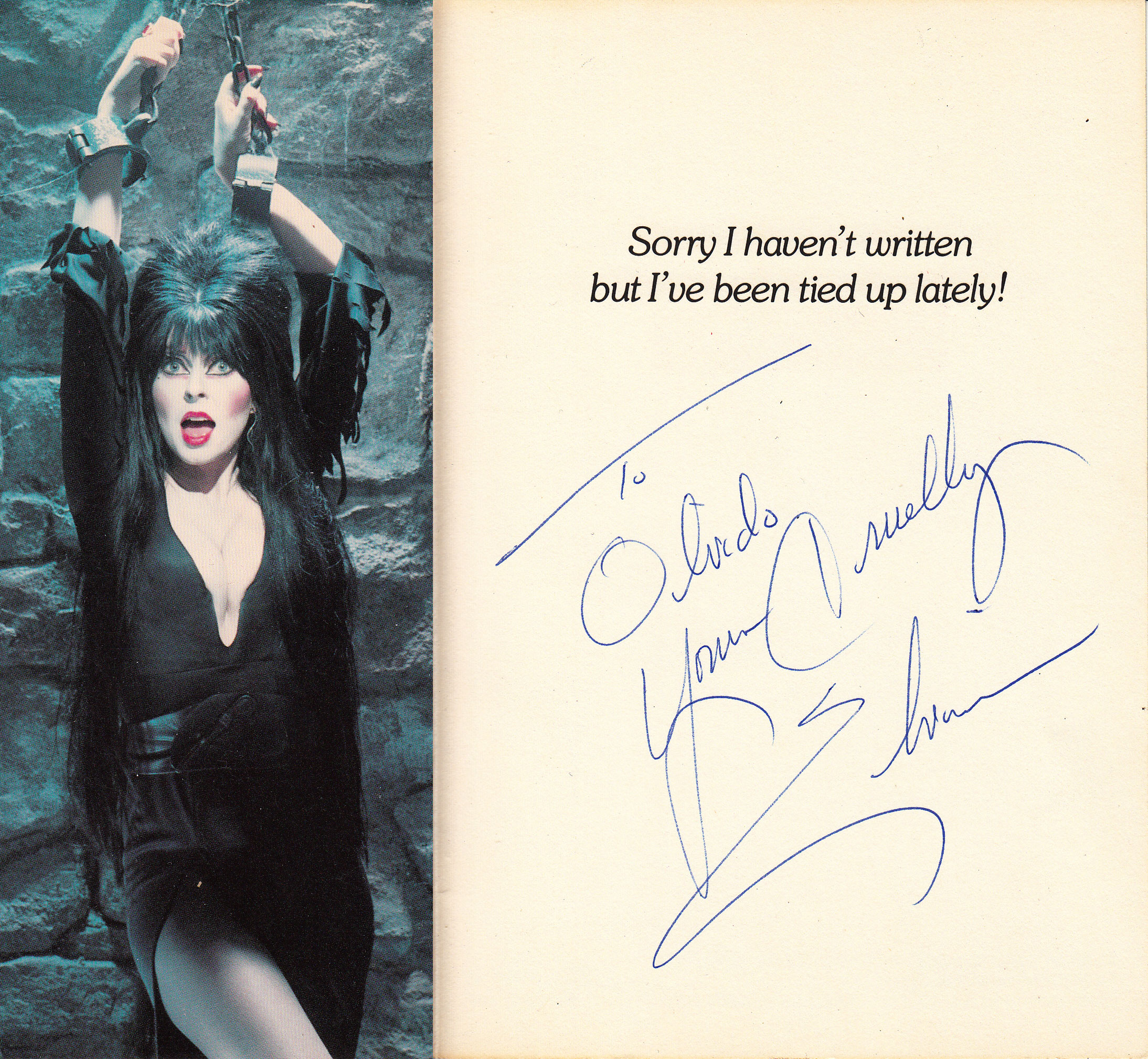 Así firma siempre Elvira sus autógrafos. En su momento me dio rabia que se lo pidieran a nombre de Olvido y no de Alaska.