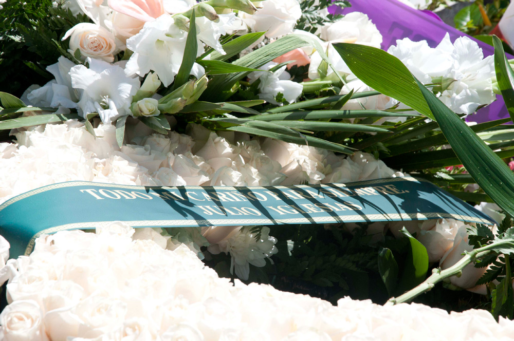 "Con todo mi cariño para siempre" se podía leer en una de las bandas de flores enviada por Julio Iglesias