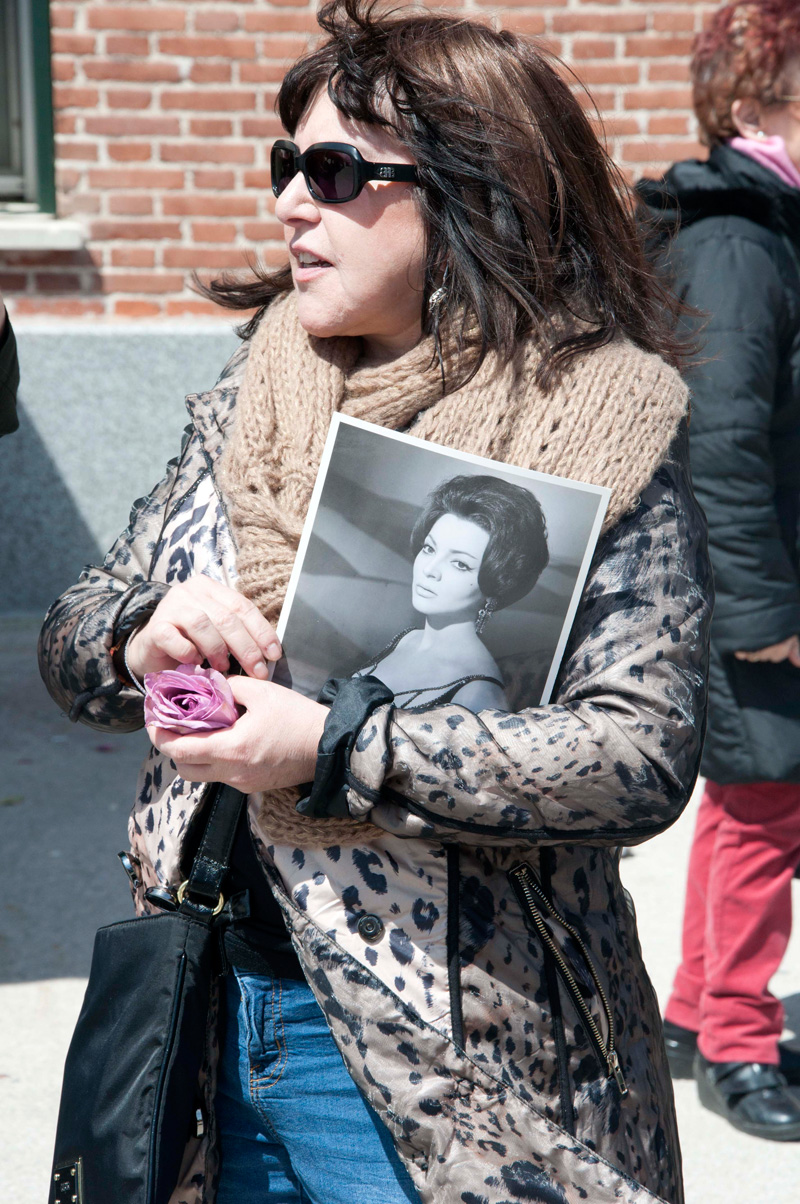 La actriz Loles León, portando una foto de Sara Montiel, también asistió al último adiós a la artista