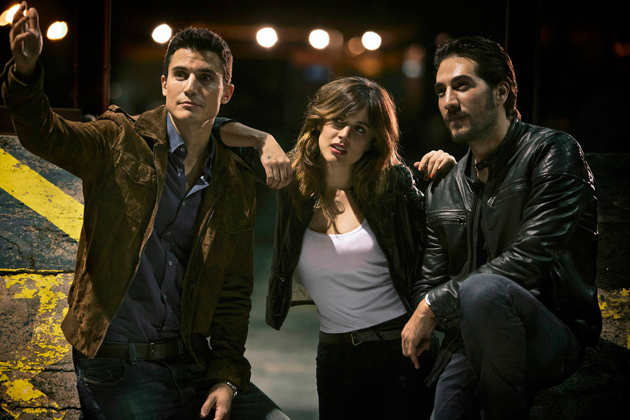 Adriana Ugarte junto a Álex González y Alberto Ammann en una de las escenas de la película, que se estrenó este fin de semana, Combustión.