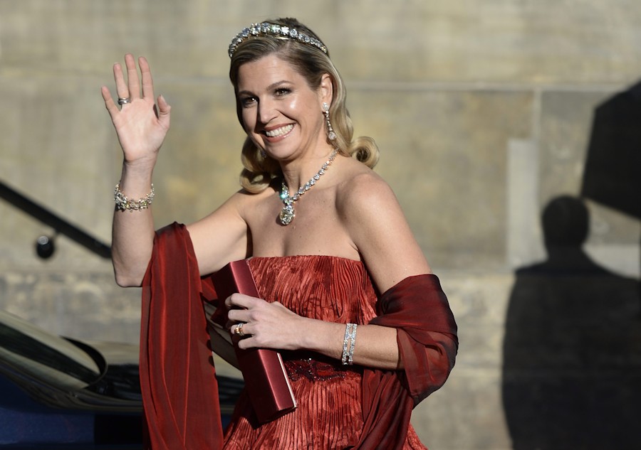 La Princesa Máxima de Holanda saliendo del Palacio Real de Amsterdam hacia la cena de gala previa a la coronación