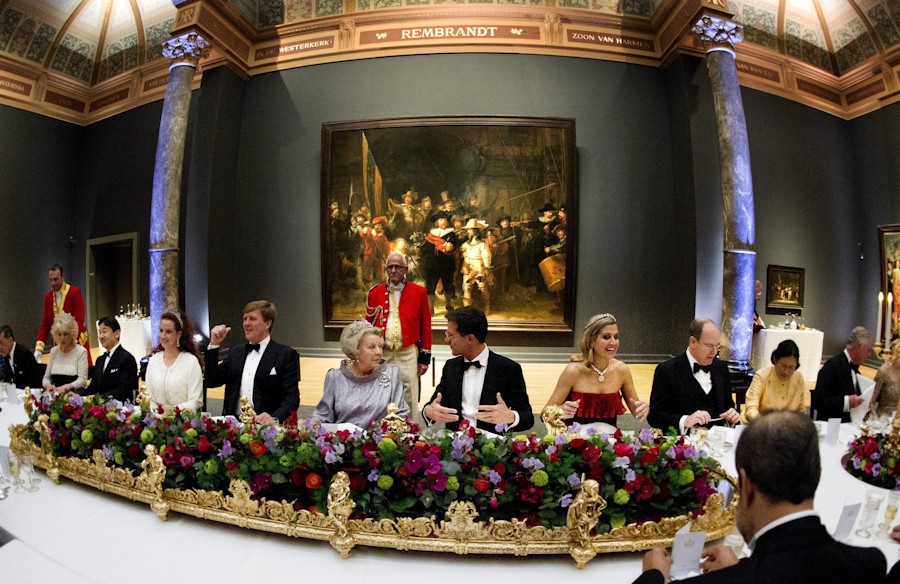 Guillermo y Máxima de Holanda fueron los anfitriones de una cena de gala en Ámsterdam la noche antes de la coronación.