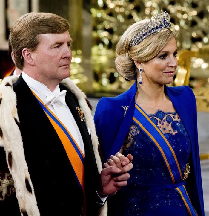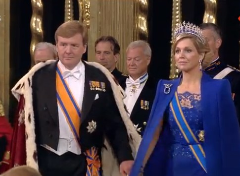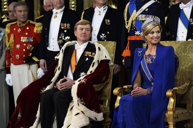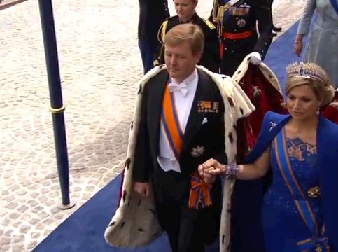 Los Reyes de Holanda, al comienzo de la ceremonia de entronización.