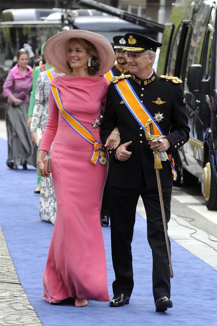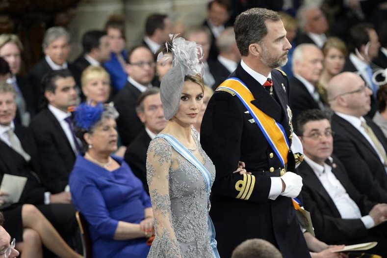 La princesa Letizia y el príncipe Felipe a su llegada a la ceremonia de investidura del rey Guillermo-Alejandro en la catedral de Nieuwe Kerk (iglesia nueva) en Ámsterdam (Holanda).
