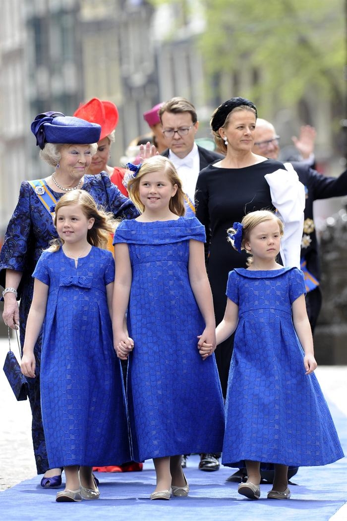 La princesa heredera Catalina-Amalia de Holanda y sus hermanas las princesas Alexia y Ariane caminan junto a su abuela la princesa Beatriz de Orange