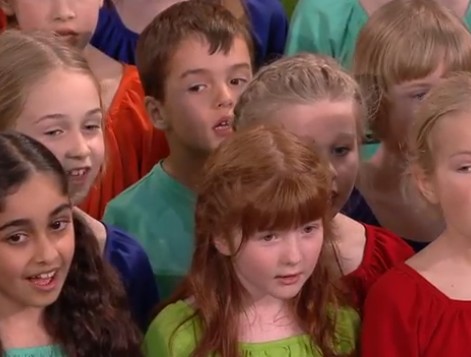 Un coro de niños canta durante la ceremonia de investidura del rey Guillermo-Alejandro.