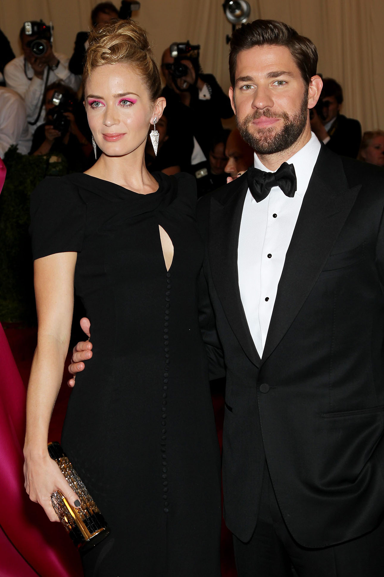 El actor John Krasinski, de The Office, y la británica Emily Blunt, optaron por un look más formal.