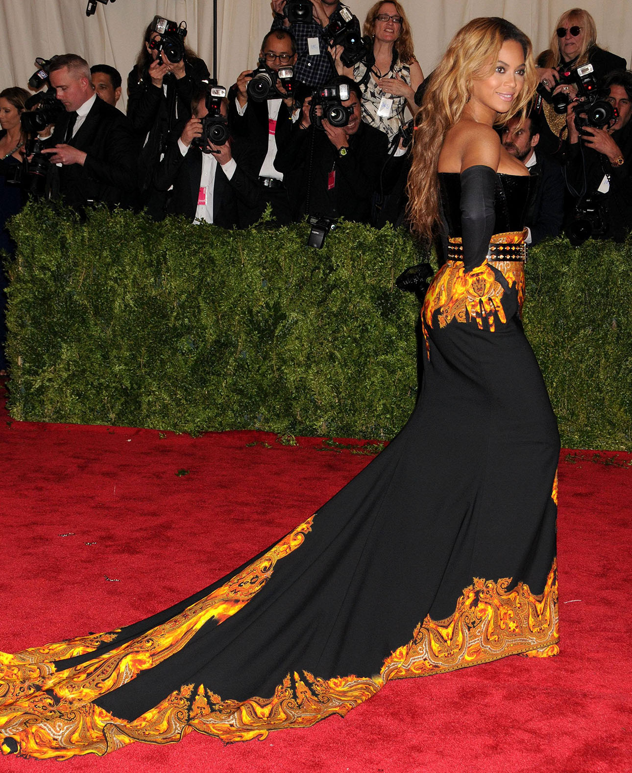 La madrina del evento, Beyoncé, cerraba la pasarela con un palabra de honor negro y fuego de Riccardo Tisci, más en consonancia con su habitual look de pantera del Rythim and Blues que con el movimiento underground de los setenta y ochenta.