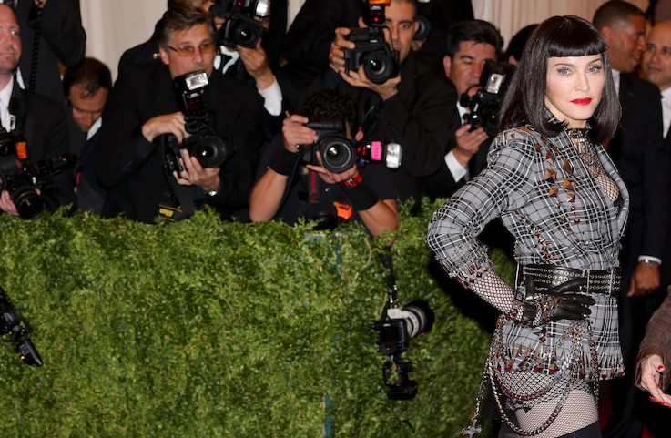 Madonna, la reina del pop, se adueñó de la función gracias a su Riccardo Tisci, de Givenchy, que acumulaba cuadros escoceses en su aún delgada figura. Por lo demás, cinturones, clavos y tacones rosa fucsia.
