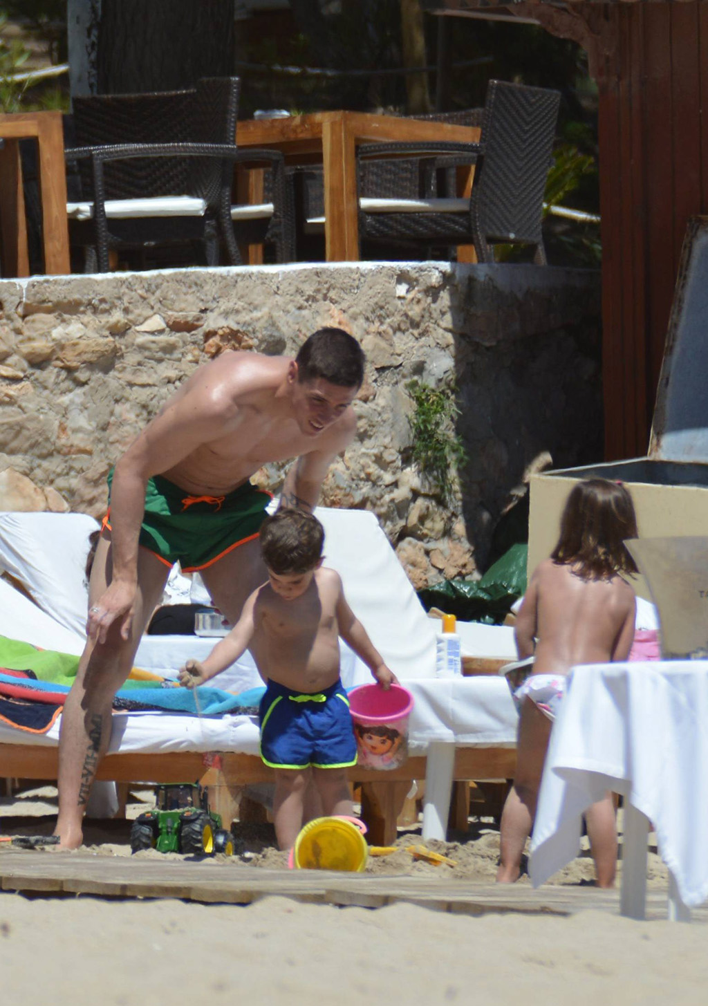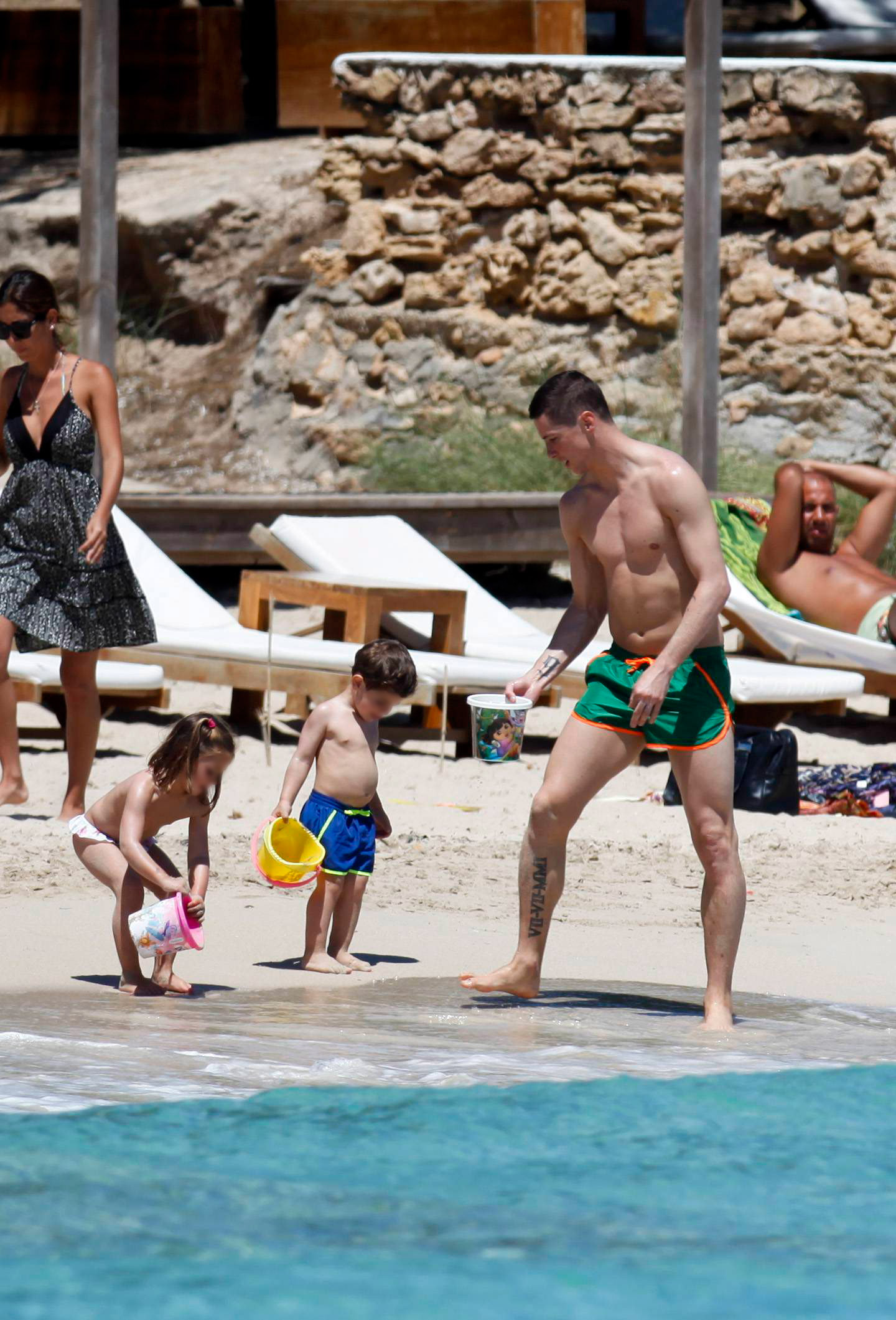 Torres, que presumió de una notable musculatura y tatuajes, juega con los pequeños Nora, de 3 años, y Leo, de 2.