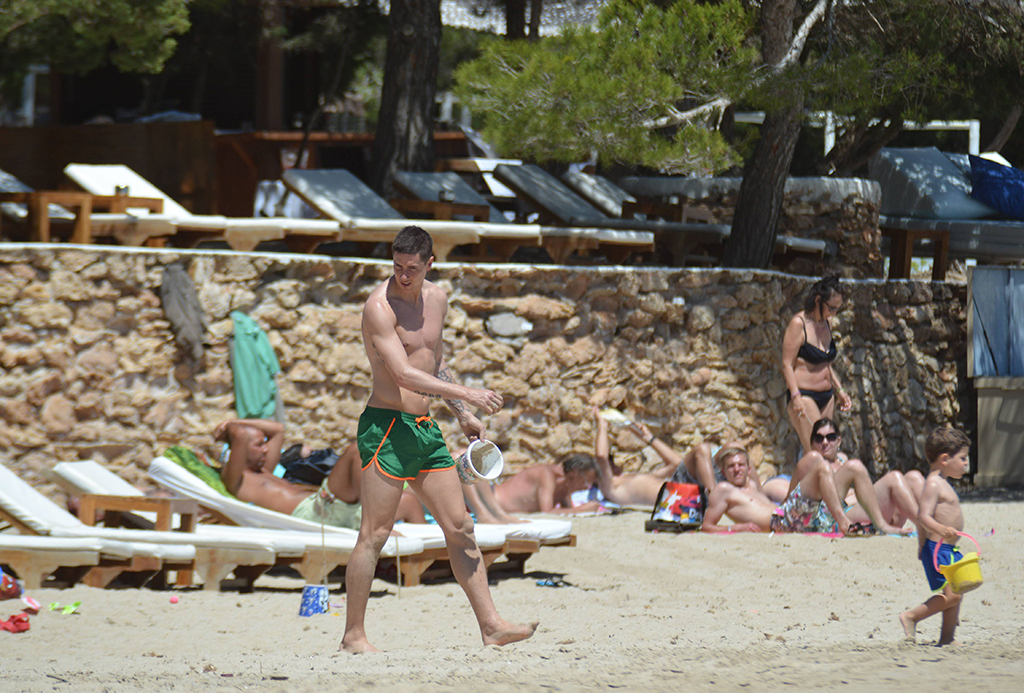 El jugador del Chelsea celebró su aniversario de bodas de la manera más familiar: con una jornada de playa junto a su espectacular esposa, Olalla, y sus dos hijos, bajo el sol de Ibiza.