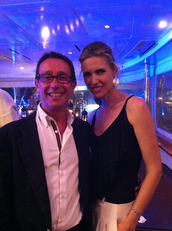 Posando con la modelo Judit Mascó, otra de las asistentes destacadas al evento en el puerto de Barcelona.