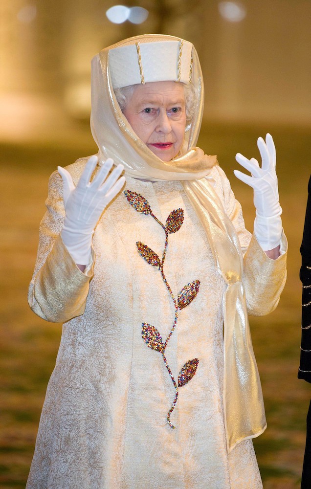 A la reina Isabel no se le vio demasiado cómoda con el look que eligió para su visita a Abu Dhabi