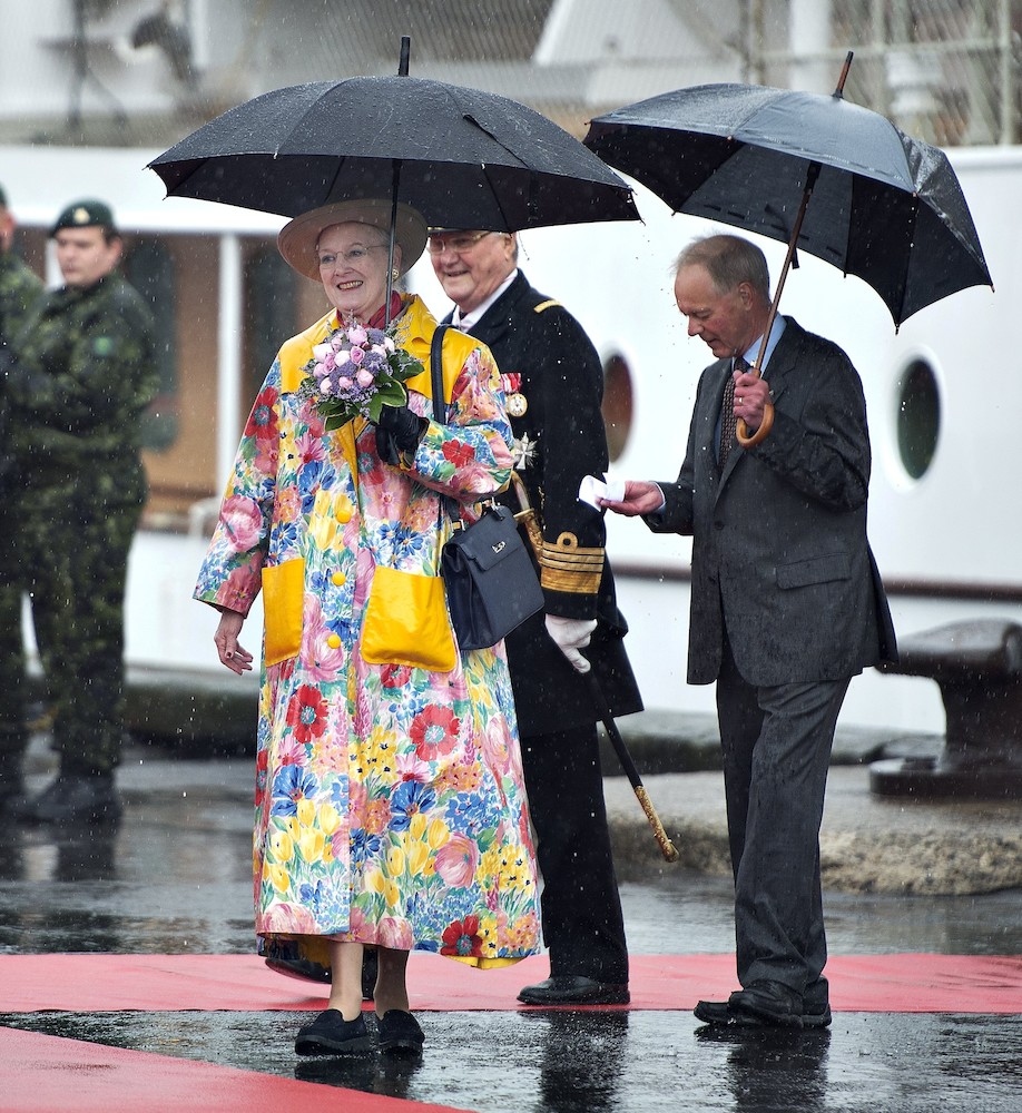 La princesa Mary, sin embargo, tiene la ventaja de que su suegra, la reina Margarita, siempre suele eclipsar al resto con sus peculiares looks. Con este indescriptible abrigo, dejó atónitos a sus súbditos de la región danesa de Jutlandia. Lo diseñó ella misma