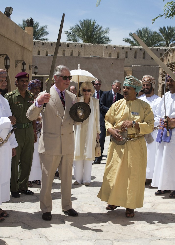 El príncipe Carlos posó así de armado tras visitar el mercado de artesanía de Omán en una visita oficial con Camilla