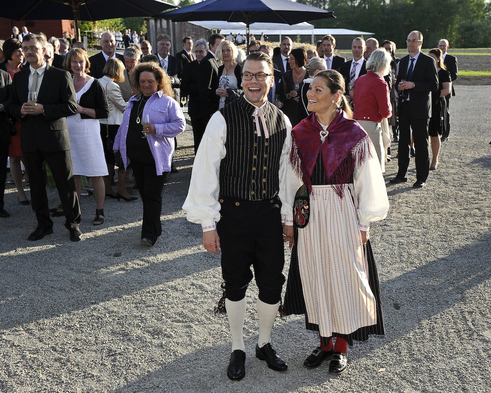 La princesa Victoria de Suecia y su marido, Daniel Westling, visitaron antes de su boda la localidad natal de él, Ockelbo. Le pusieron tantas ganas que se pusieron el traje regional. El resto de invitados no les secundaron.