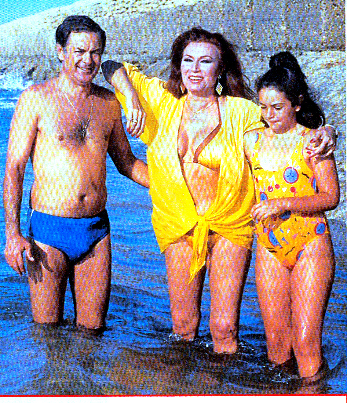 1987. Rocío Jurado y Pedro Carrasco era una de las parejas más queridas por los españoles que devoraban la prensa rosa del momento. Siempre mantuvieron una relación cordial con los periodistas, prestándose cada año al inevitable posado veraniego, aquí con su hija Rocío.