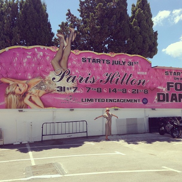 Nada más llegar quiso hacerse una foto frente a la discoteca en la que horas más tarde pincharía, como anfitriona de una fiesta llena de diamantes y de lujo. Foum & Diamonds by Paris Hilton es el nombre de la fiesta que dio por la noche en la discoteca Amnesia.