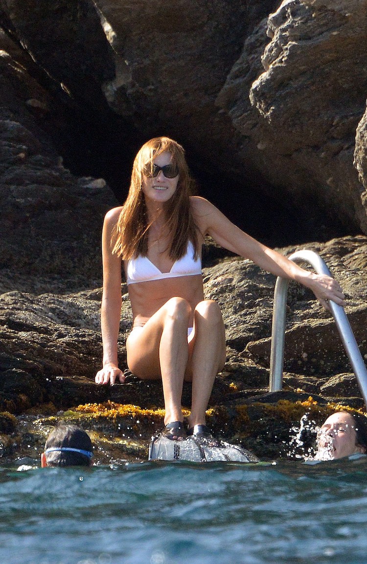 La cantante y esposa del expresidente francés Nicolas Sarkozy demostró conservar la envidiable figura que le reportó la fama en las playas de Cap Negre.