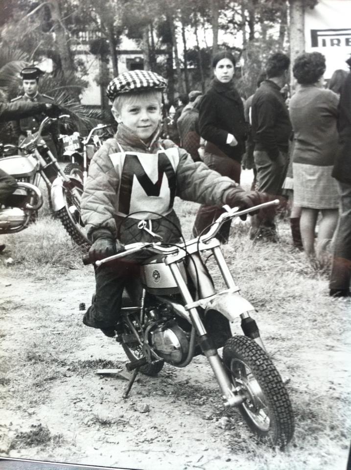 Su primera afición fueron las motos. Su padre fue el fundador de Bultaco y Montesa. En la imagen, colgada por Bultó en Facebook, aparece con sólo cinco años montado en una motocicleta