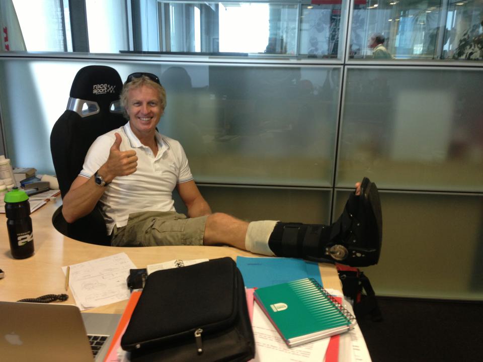 Bultó sufrió un accidente practicando el mismo deporte hace unos meses, cuando saltó desde un hotel en Benidorm. En la imagen, la foto que colgó en Facebook contando la experiencia
