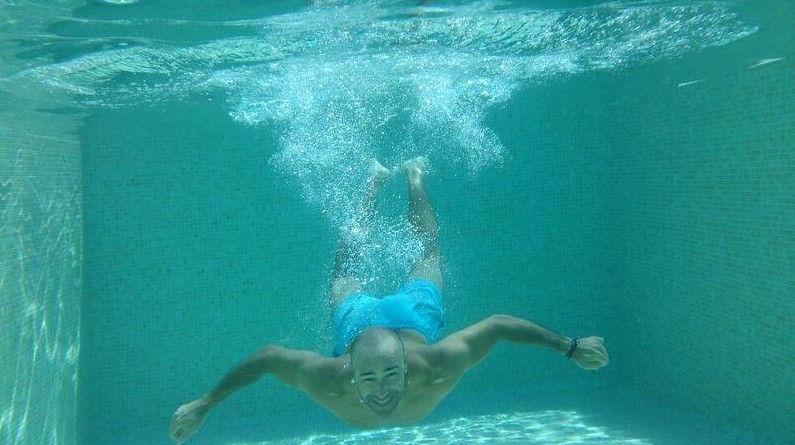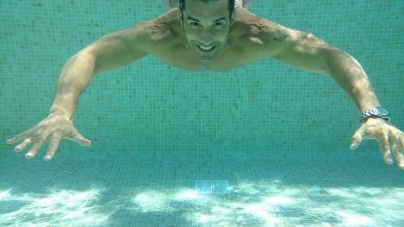 Roberto también ha aprovechado para sacarse una instantánea entrando a la piscina.