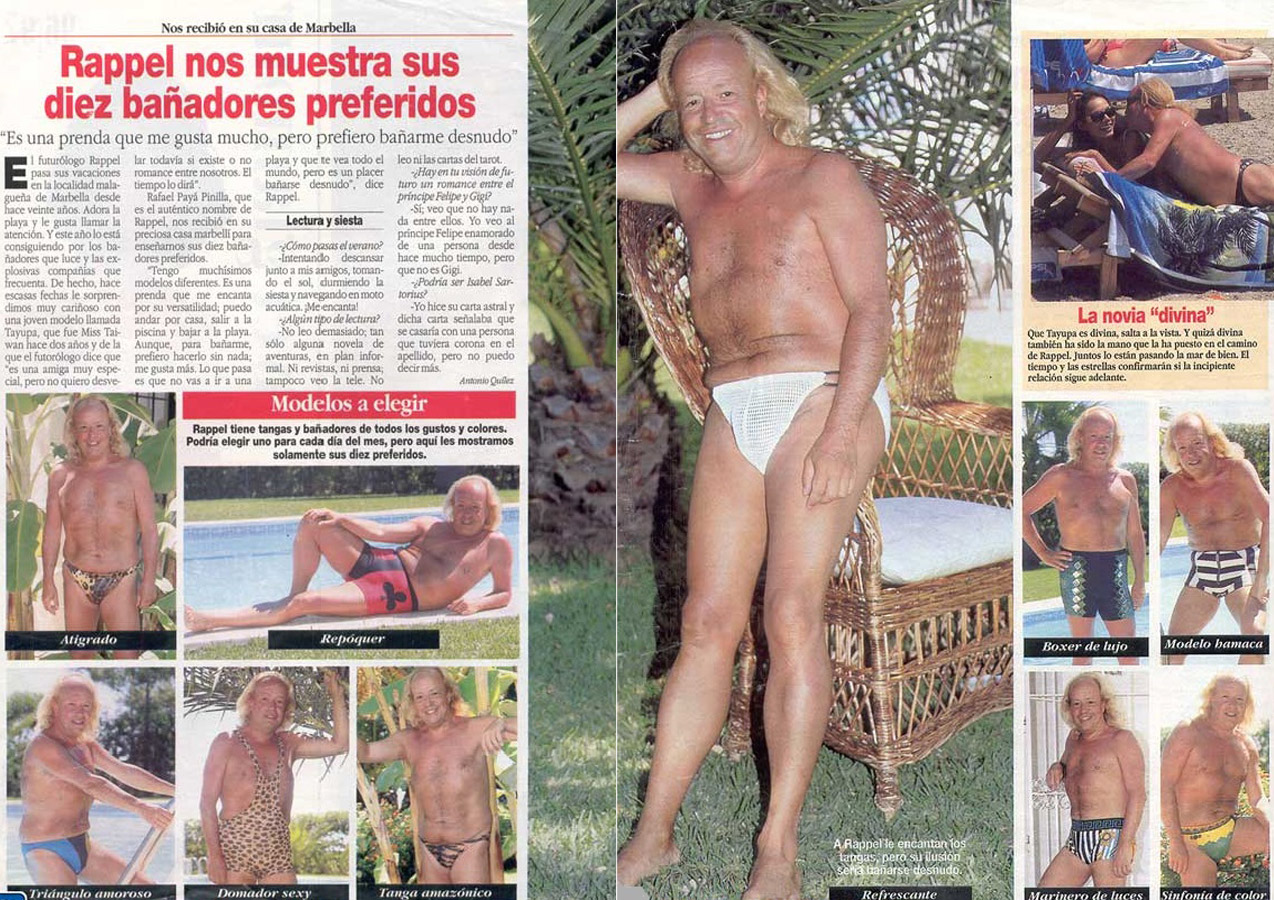 Eran los tiempos pre-Sálvame, cuando Tómbola inventó una nueva forma de hacer televisión del corazón. Rappel reinaba en el programa y en las revistas. Esto es un posado sin prejuicios y sin mucha tela para cubrirse.