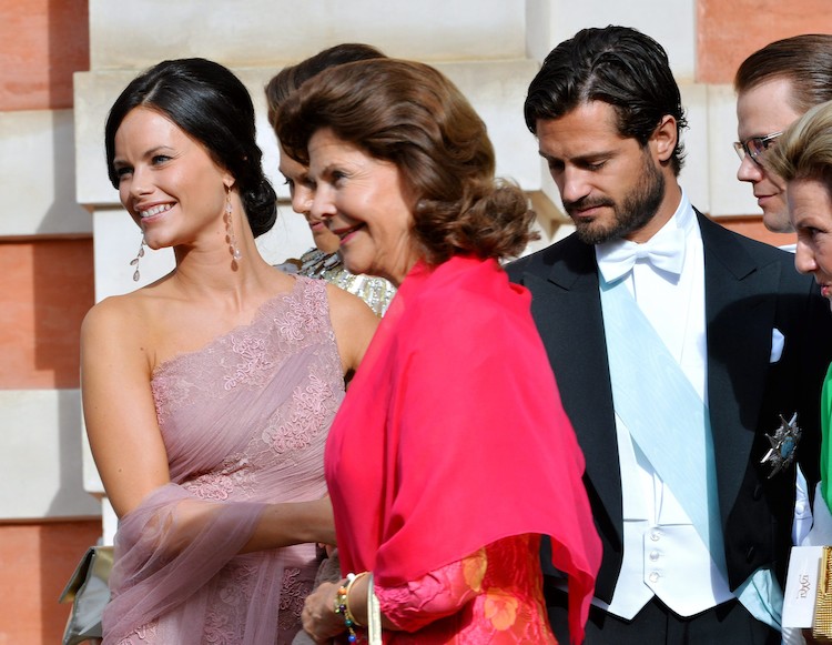 Los novios partieron del castillo en un carruaje tirado por caballos hacia un muelle desde el que zarpó un barco donde tuvo lugar la boda posterior. En la imagen, Sofia Hellqvist junto a la Reina Silvia.