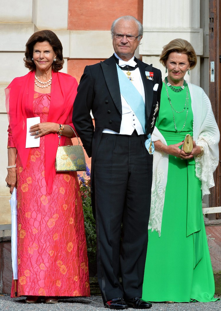 Una boda que dio inició a las 15: 40, hora local, y en la que estuvo presente la totalidad de la familia real sueca, además de amigos y familiares de los novios. En la imagen, el Rey Gustavo, Tord Magnuson, la princesa Cristina, la Reina Consorte Sonia de Noruega, la Reina Silvia y el padre de la novia, Andren, a su llegada a la capilla Ulriksdal.
