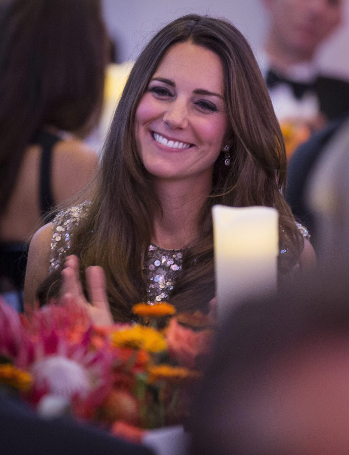 Es la primera vez que aparece la Duquesa de Cambridge vestida de gala después de haber dado a luz a su primer hijo. Había cierta expectación por la vuelta de la princesa a la agenda oficial. Y lo cierto es que estaba radiante, deslumbraba. Fue el centro de atención de todas las cámaras e invitados de los Tusk Conservation Awards. La pareja presidió la cena de gala de los premios.