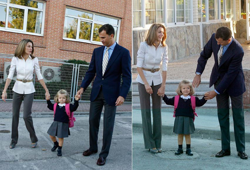 El despliegue mediático del primer día de clase de la hija mayor de los Príncipes de Asturias incluyó paseo, posado y alguna tímida declaración de la niña.