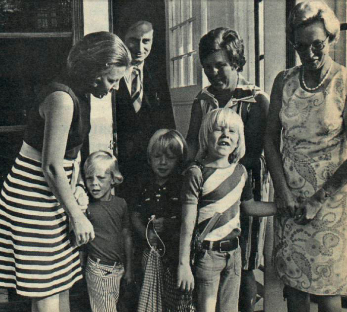 1968, con Carolina, acompañándola a un internado de señoritas. 1968, con Alberto y su pesada cartera. Y 1971, con Estefanía y su graciosa carterita.