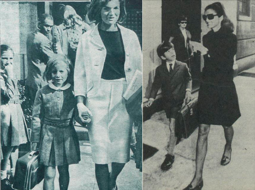 En 1964 Jackeline Kennedy llevaba al colegio a Caroline, su hija mayor, meses después del asesinato del presidente. Apenas unos años después, en 1968, acompañaba a John John poco antes de convertirse en la esposa de Aristóteles Onassis.
