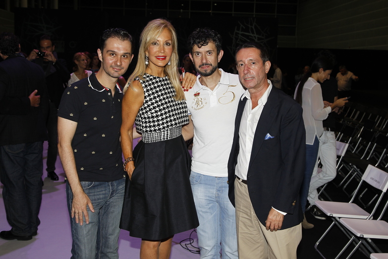 Carmen Lomana y Pérez Gimeno (derecha) con los diseñadores Álex Regueiro y Alfredo Iglesias, de la firma Alalá.