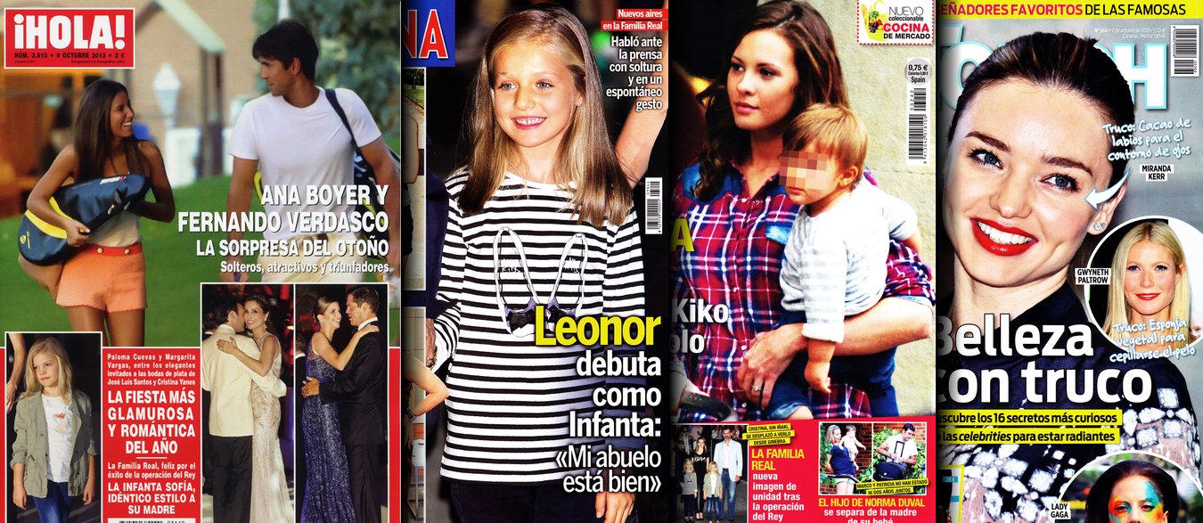 Portadas de las revistas Semana, Diez Minutos, Lecturas, Cuore e InTouch.