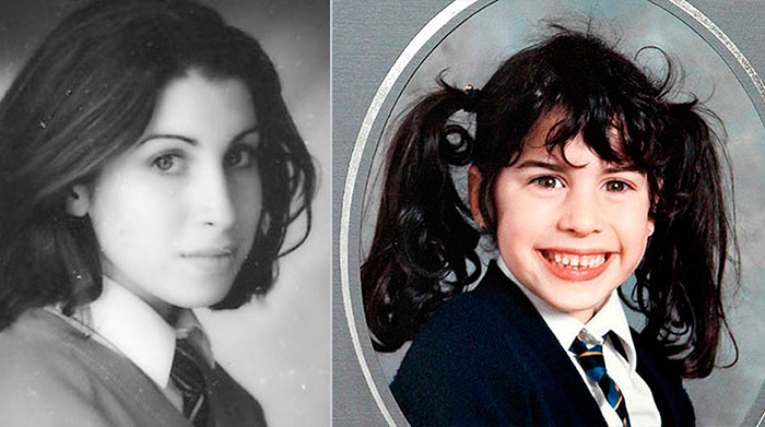 Una pequeña copia de Pippi Calzaslargas en moreno dio paso a una adolescente bastante mona, destinada a triunfar en la música pero no en la vida. Amy Winehouse a través de la edad escolar.
