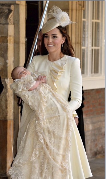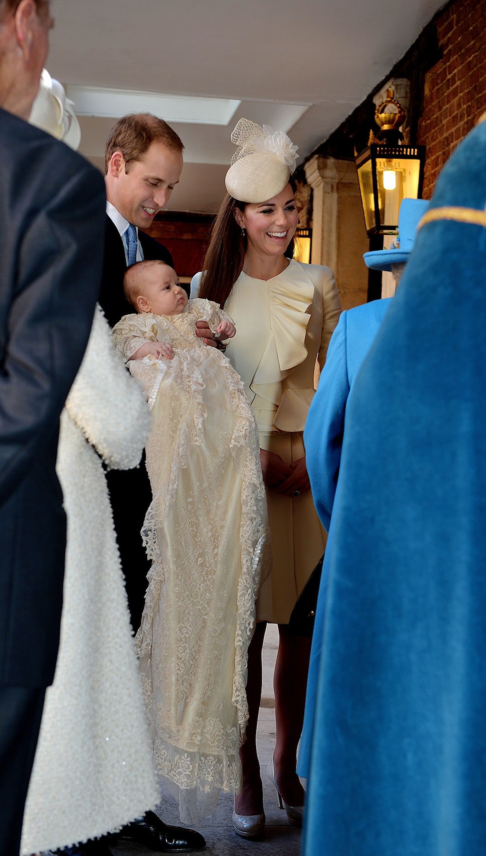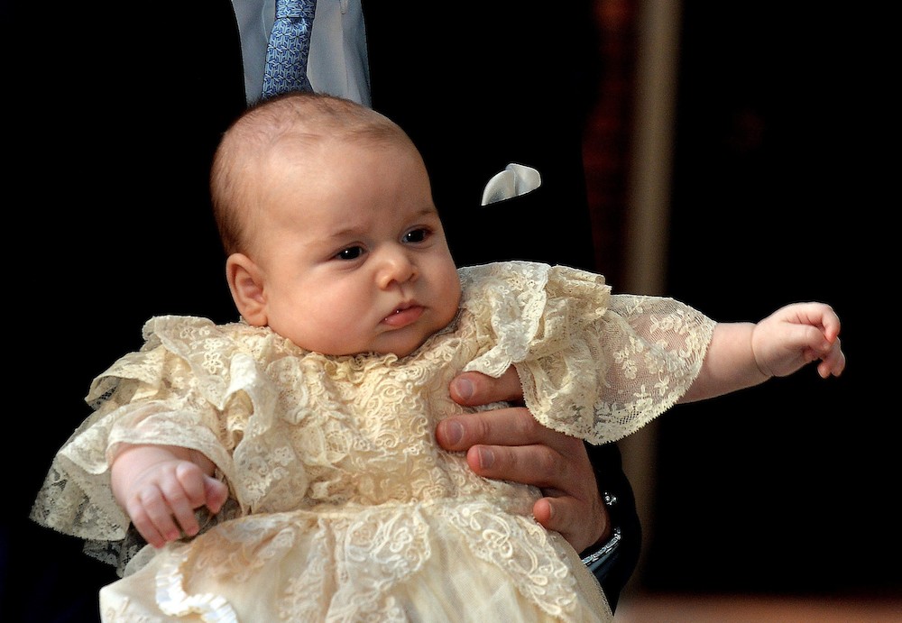 Un portavoz de la Casa Real británica trasladó a los medios que los duques de Cambridge se habían decidido por un faldón de satén blanco para el príncipe George, una réplica del que utilizó la hija mayor de la reina Victoria en el año 1841.
