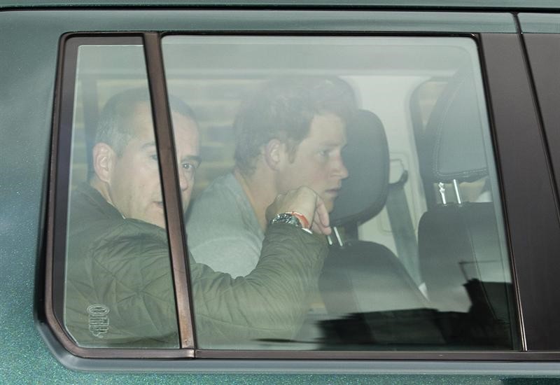 El príncipe Enrique abandonando el Palacio de Kengsinton para asistir al bautizo del príncipe Jorge, hijo de los duques de Cambridge, en Londres.