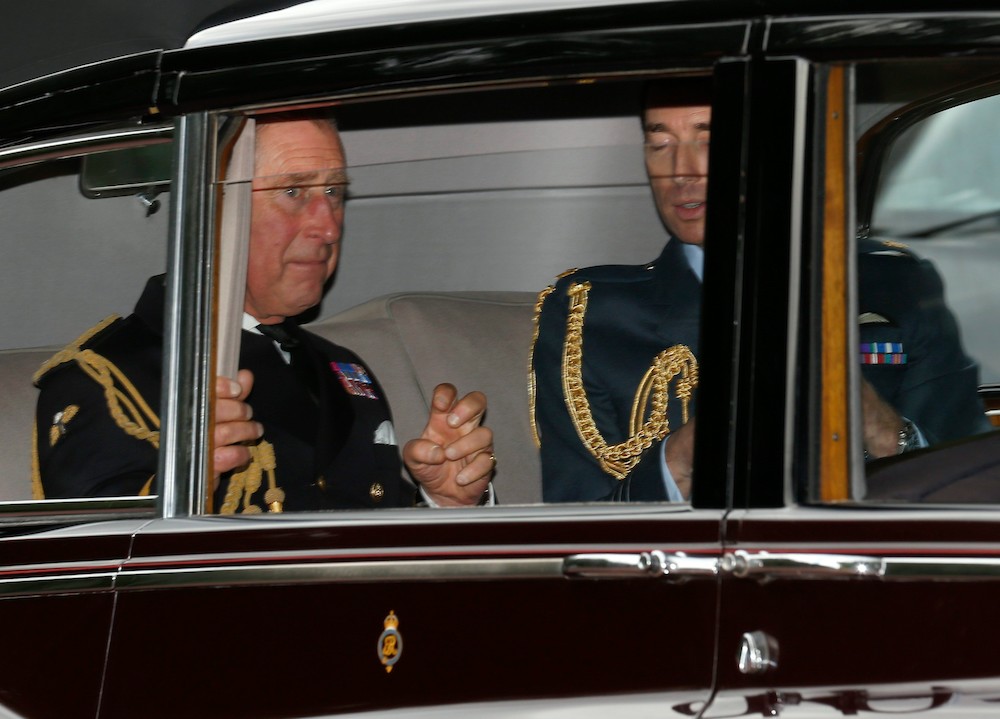 El príncipe Carlos acudió al bautizo de su nieto Jorge de Cambridge en coche, vestido con su uniforme. Antes de su llegada a la capilla, El príncipe Carlos de Inglaterra y su esposa Camilla se reunieron con la líder de la oposición birmana, Aung San Suu Kyi.