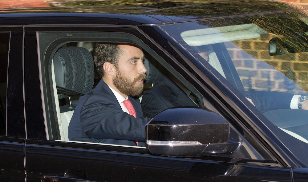 James Middleton, hermano de la princesa Catalina, a su llegada al bautizo más mediático de la temporada, un evento que ha congregado a toda la prensa británica pese a su carácter íntimo.