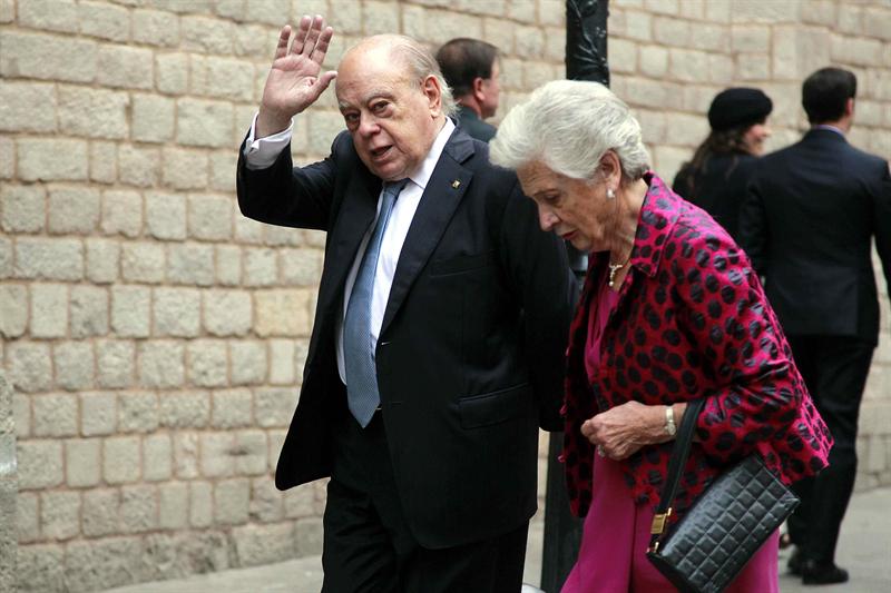 El expresidente de la Generalidad Jordi Pujol y su mujer, Marta Ferrusola, minutos antes de entrar a la iglesia de Santa María del Mar donde se ha celebrado la boda.