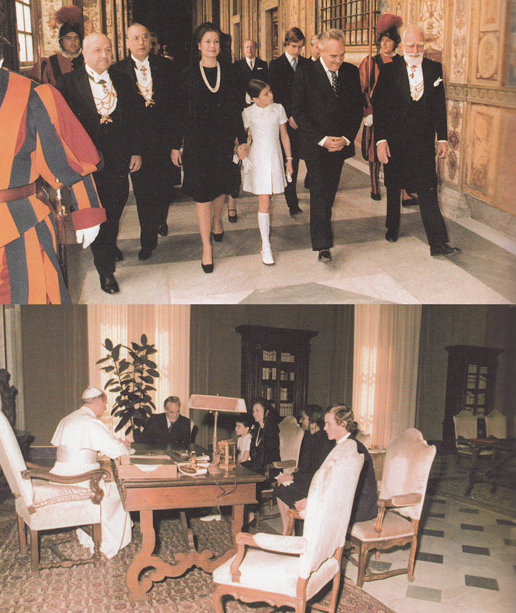 Esta vez fue toda la familia a la audiencia papal. El 25 de marzo de 1974 Pablo VI recibió al príncipe Rainiero III, a la princesa Gracia y a sus hijos.