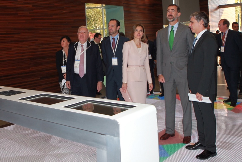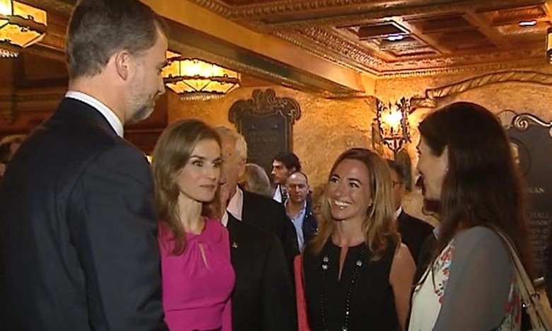 Justo antes de comenzar el viaje oficial a California y Florida, los Príncipes de Asturias fueron despedidos con Honores de Ordenanza e interpretaron el Himno Nacional en el Pabellón de Estado de la T-4 del Aeropuerto de Barajas. El ministro de Asuntos Exteriores, José Manuel García-Margallo, y el presidente de Baleares, José Ramón Bauzá, les acompañan en este viaje