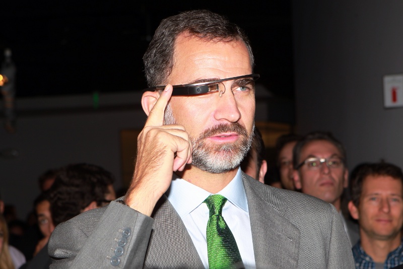 Don Felipe prueba las gafas de Google durante su visita a la sede que la multinacional tiene en Silicon Valley.