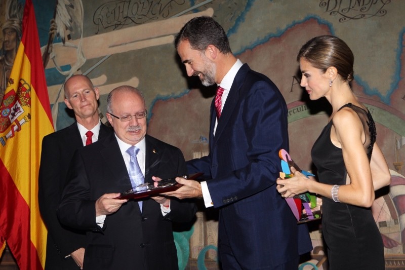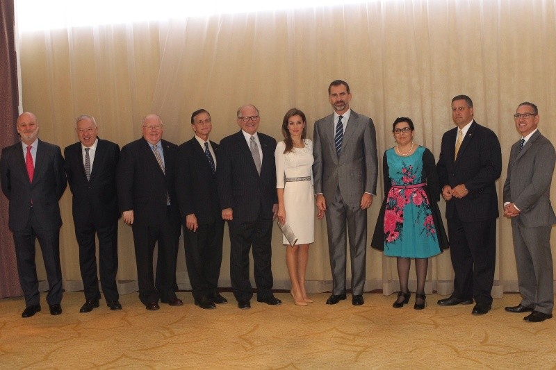 En la cena para la contribución a la entidad organizadora la Fundación España-Florida, Don Felipe y Doña Letizia entregaron el Premio Ponce León 500 años a Eduardo Padrón, presidente del Miami Dade College.