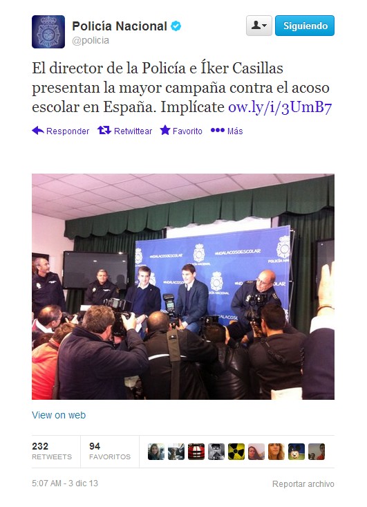 Deportistas como Iniesta, además del propio Iker Casillas, se han sumado a esta iniciativa policial contra el acoso escolar.