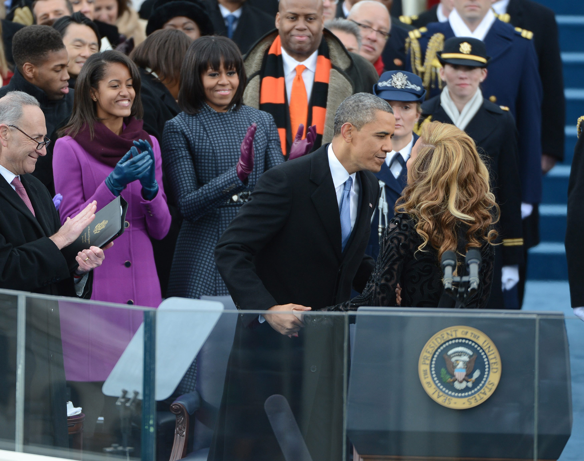 En la segunda reelección de Obama, en enero de 2013, con Beyoncé cantando el himno nacional ante miles de personas