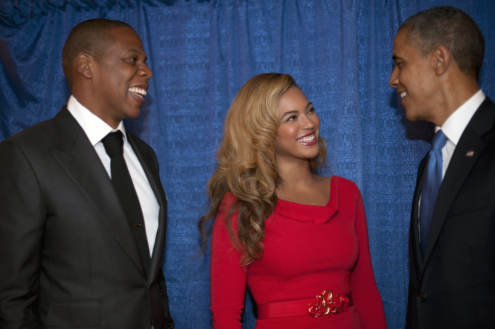 Beyoncé y Obama con otros invitados al evento, entre ellos una profesora americana.